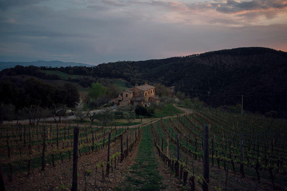 Weinigen hadden verwacht dat dit stukje land een bakermat zou worden voor een grootse terroir in Montalcino, toen Francesco Leanza het bijna 30 jaar geleden voor het eerst bewerkte. Het landgoed en de cantina vormen nu het hart van een omheinde kosmos van 11 hectare, inclusief 4,5 hectare wijnstokken, een olijfplantage en bos. “Het land ging ons voor; het voedt nu onze wijnstokken, en het zal hier zijn als we er niet meer zijn, bevestigen Sabine en Felix Eichbauer, de huidige eigenaren van het domein.